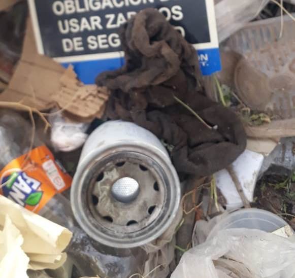 El Coordinador rápidamente se dirigió al sitio en donde estaba dejando sus residuos este hombre y descubre que entre los desechos había filtros de aire y aceite, mangueras con petróleo e hidrocarburos y trapos contaminados con estos combustibles.