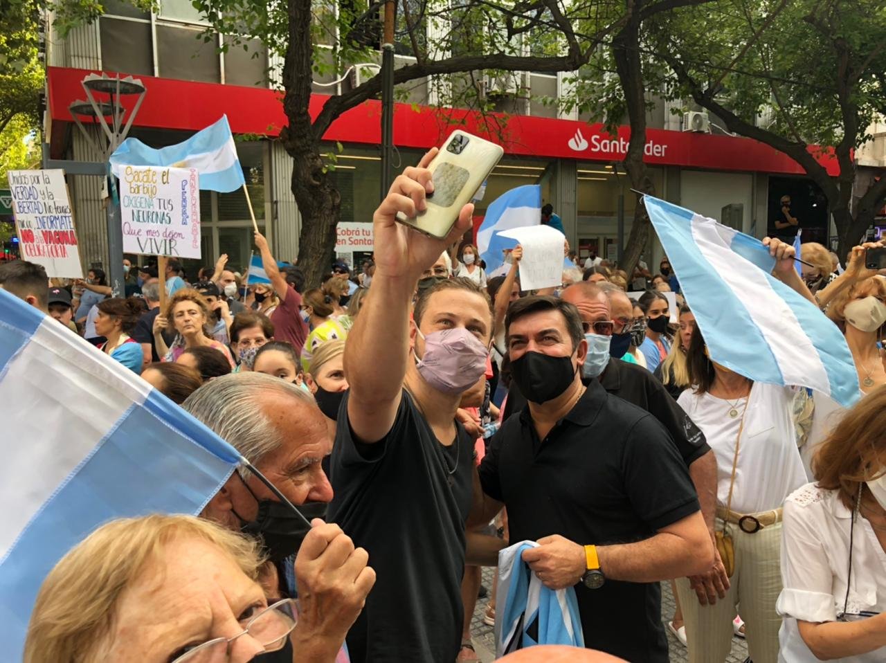 Muchos manifestantes se alzaron con banderas argentinas y pancartas con consignas contra el gobierno de Alberto Fernández y en repudio al “robo de vacunas” haciendo alusión al escándalo del Vacunatorio VIP que desembocó en la renuncia del ex ministro de Salud de la Nación, Ginés González García.
