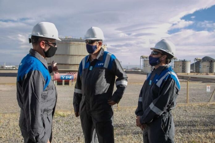 El titular de la cartera de Economía y Energía junto a Lisandro Nieri aprovecharon la visita al yacimiento El Portón para reunirse con el vicepresidente de upstream de YPF, Gustavo Astié, y recorrer los activos que la compañía nacional posee en el extremo sur de la provincia. “Creemos en un Estado que facilite las inversiones y por eso vamos a avanzar con YPF en evaluar alternativas de inversión que posee la empresa”, agregó Vaquié.