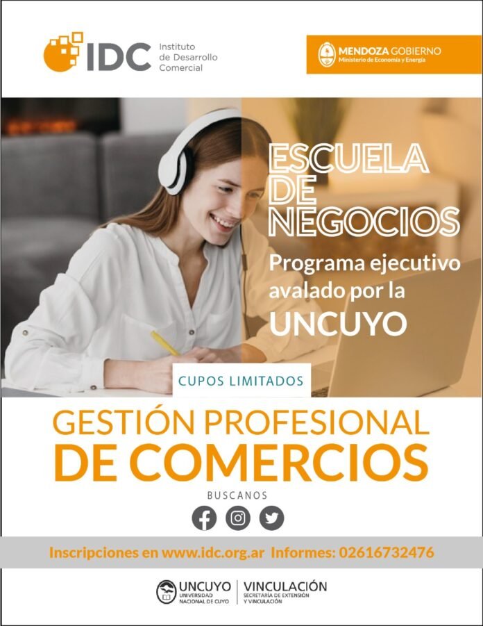 Se trata de un nuevo programa ejecutivo en “Gestión profesional de comercios”, avalado por la Universidad Nacional de Cuyo (UNCuyo) y enmarcado en las acciones de capacitación que se brindarán a través de la Escuela de Negocios del IDC.
