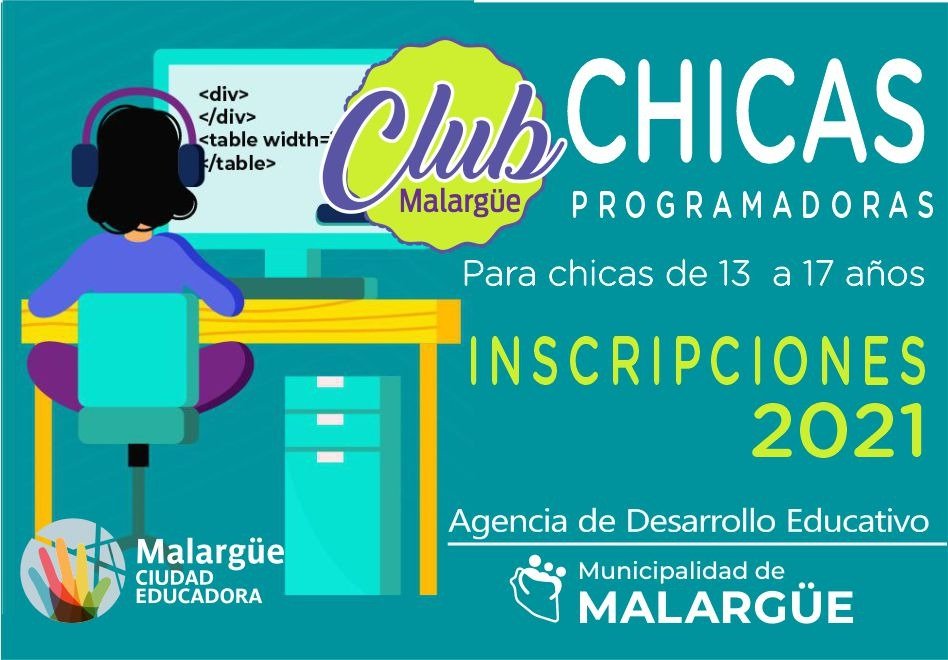 Chicas Programadoras Malargüe es una iniciativa de la Agencia de Desarrollo Educativo de la Municipalidad de Malargüe. El club busca transmitir a jóvenes mujeres el entusiasmo por la tecnología e inspirarlas a pensar su futuro en el mundo digital.