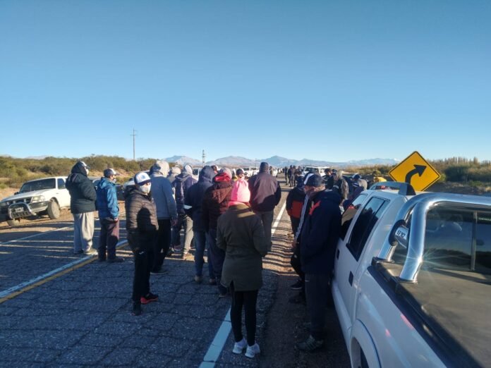 Un grupo de trabajadores y desocupados de la industria petrolera efectúa un corte parcial de la ruta nacional 40 a la altura de cerro Ceferino.