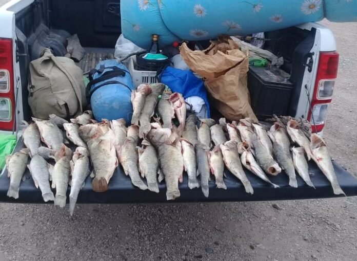 Dentro del vehículo secuestrado, personal de Guardaparques identificó 54 ejemplares de perca, que fueron decomisados, junto con cuatro cañas de pescar.