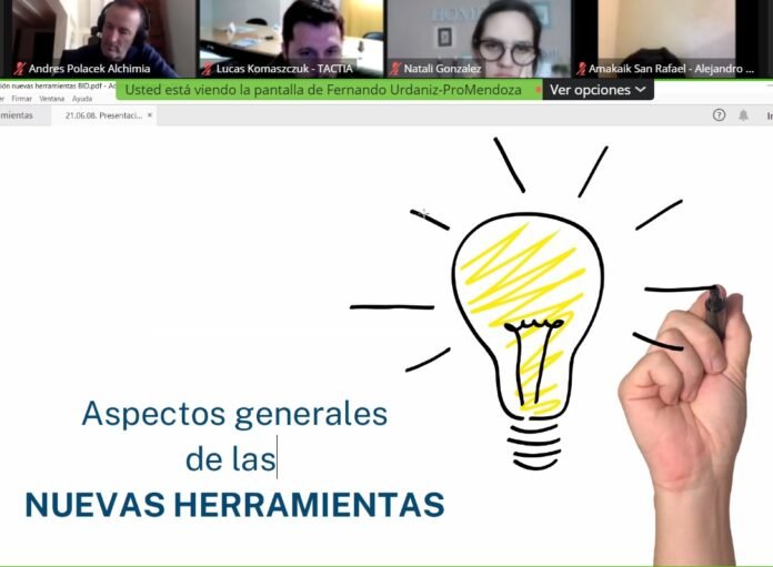 Durante la disertación, el gerente Mario Lázzaro presentó 3 herramientas a las que todas las PyMEs exportadoras de Mendoza pueden acceder para mitigar los efectos provocados por la pandemia, al no poder viajar los empresarios.