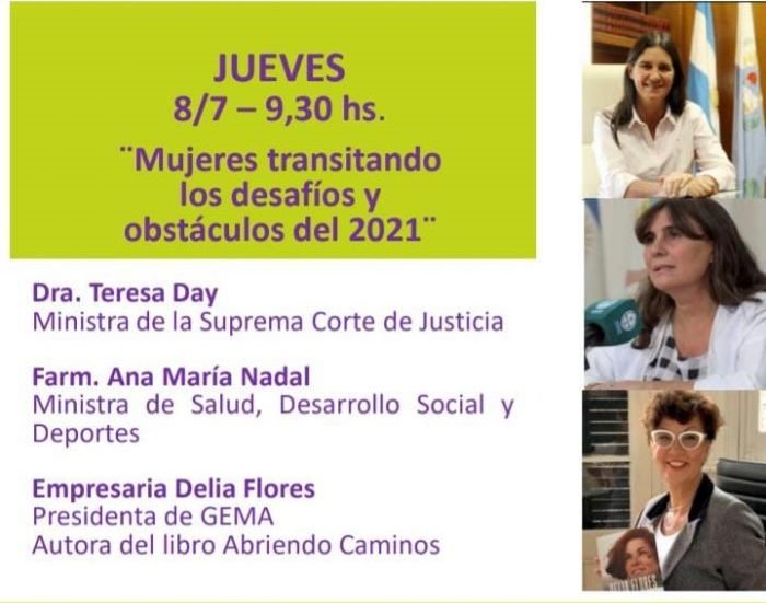 Las panelistas invitadas son Ana María Nadal, ministra de Salud, Desarrollo Social y Deportes; Teresa Day, ministra de la Suprema Corte de Justicia; la empresaria Delia Flores, fundadora y presidenta de GEMA (Grupo Empresarial de Mujeres Argentinas) y autora del libro Abriendo caminos.