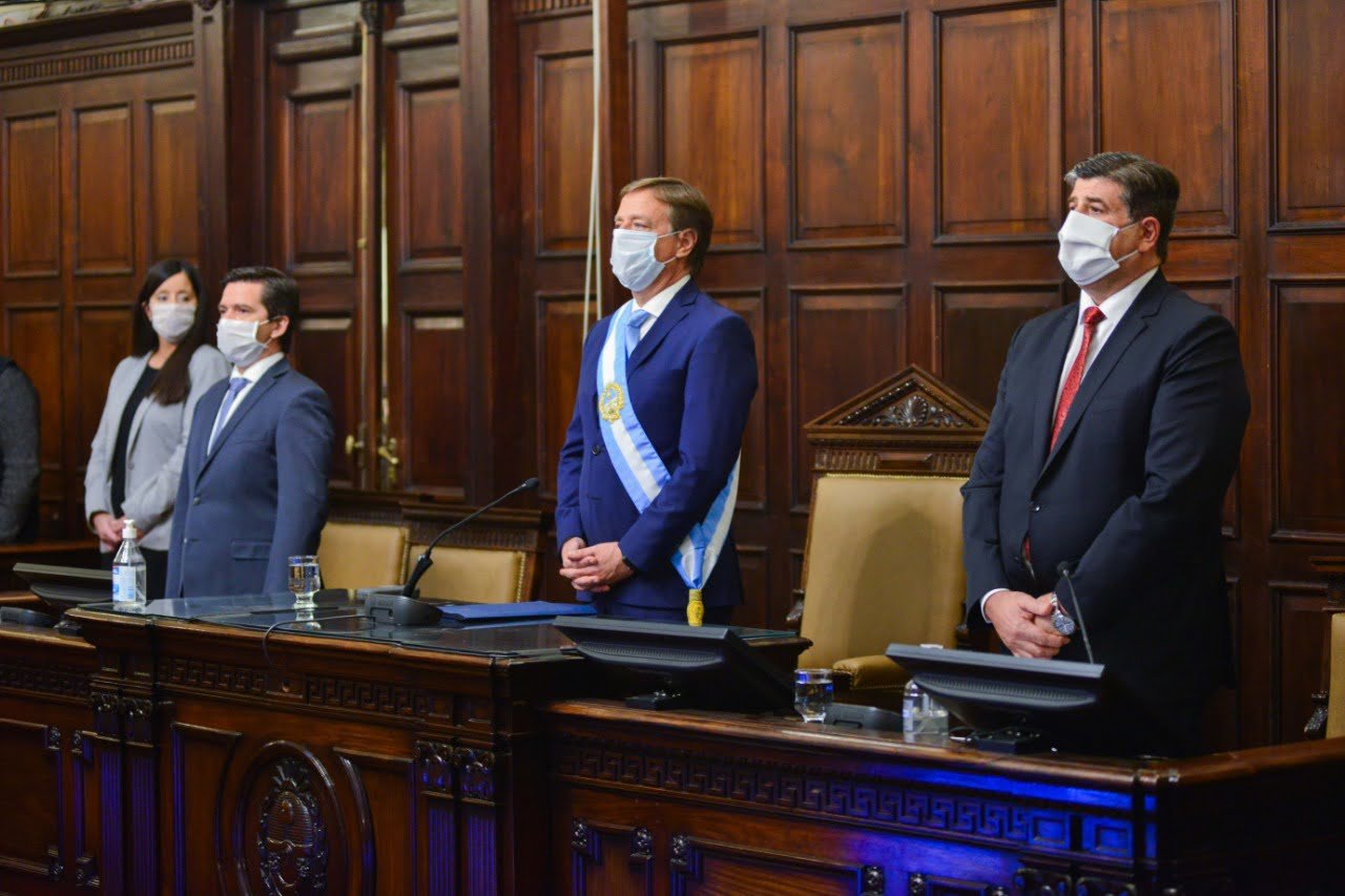 En un hecho inédito en la provincia y en el país, el Gobernador, Rodolfo Suarez brindó su primer discurso ante la Asamblea Legislativa por videoconferencia.
