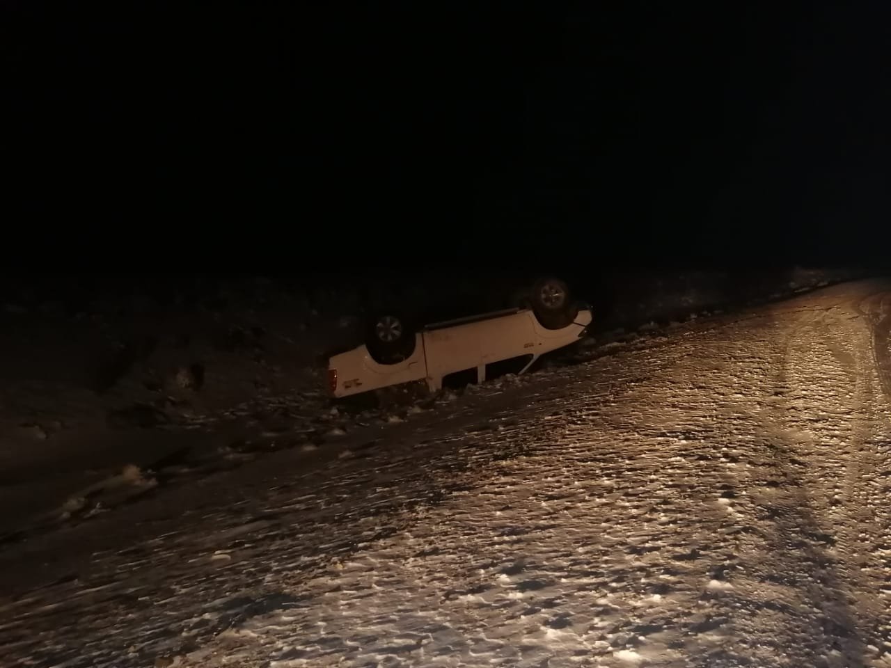 Cerca de la hora 04:10 de este sábado, personal policial toma conocimiento, por intermedio del CEO, de un vuelco en ruta 40 sur, a la altura de “El chihuido”.