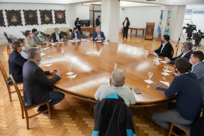 El Gobernador Rodolfo Suarez; los ministros de Economía y Energía, Enrique Vaquié; Infraestructura y Planificación Pública, Mario Isgro; Gobierno, Trabajo y Justicia, Víctor Ibañez y el gerente del yacimiento por parte del Estado, Emilio Guiñazú participaron del encuentro.