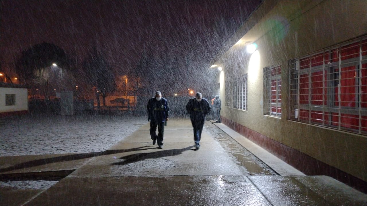 Hasta el momento todo se desarrolla con normalidad y la nota de color la da la precipitación que en estos momentos se produce sobre la ciudad de Malargüe y sus alrededores.