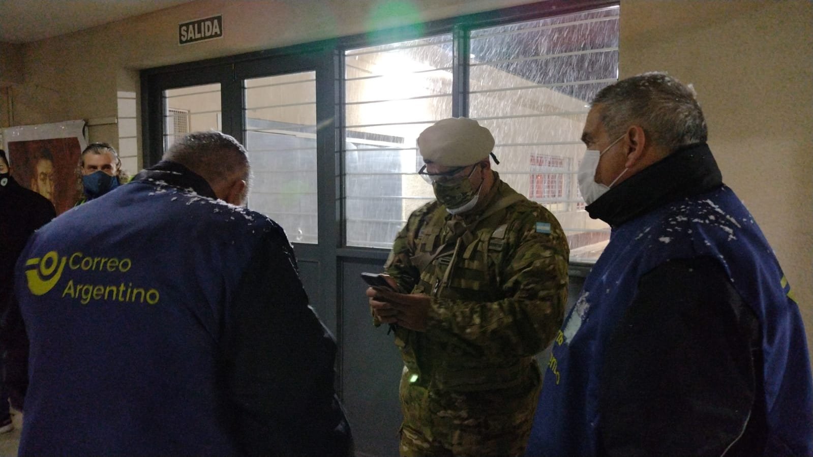 El operativo elecciones PASO ya está en marcha en Malargüe. Las urnas están llegando a las escuelas por parte del personal designado del Correo argentino mientras precipita agua nieve.