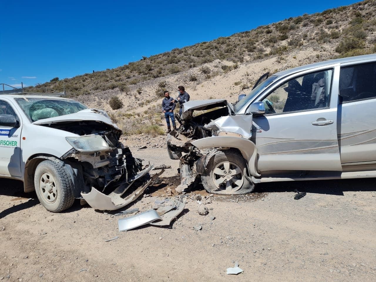 El Of. Ppal. Roberto Contreras informó de un choque entre dos camionetas en la zona de Agua de Pérez, el sur del departamento de Malargüe.
