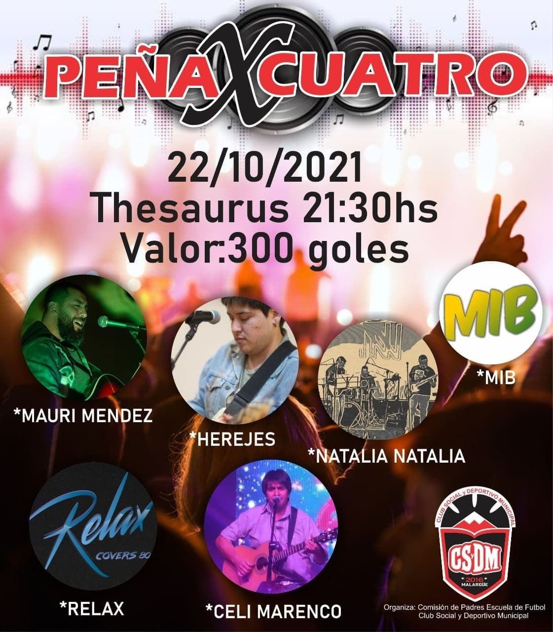La Comisión de padres de la escuela de fútbol del Club social y deportivo municipal mañana concretará otra “Peña por cuatro”, en este caso dedicada al rock nacional.