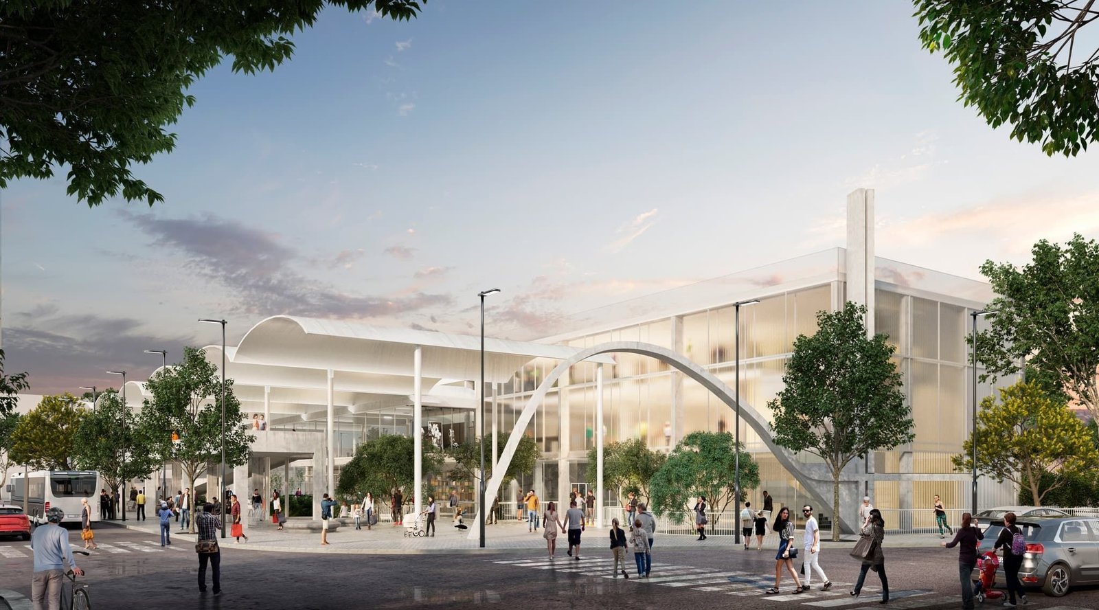 El proyecto plantea un edificio de dos plantas y una gran cubierta que enmarca una plaza abierta y publica con apeaderos, jardines, áreas gastronómicas, de oficinas, locales comerciales, zona de lactancia, salas culturales y de exposición.
