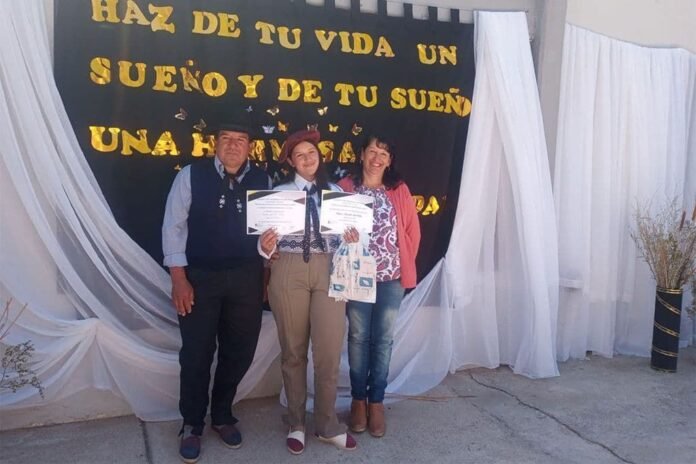 Su historia tomó relevancia el pasado 6 de julio cuando contó que, al enterarse del valor del buzo de egresada, de 4.500 pesos, no lo pensó dos veces y en el puesto Agua del León, donde vive, comenzó a tejer gorros, bufandas y swéters para poder pagarlo, algo que finalmente logró cumplir.