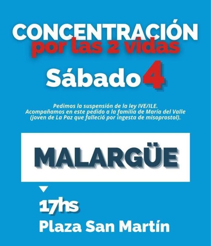A días de cumplirse 9 meses de la muerte de María del Valle González López, la jovencita de 23 años que falleció en abril pasado, en la zona este de Mendoza, tras ingerir varias pastillas de misoprostol su madre encabezará en el norte provincial una caravana pidiendo justicia y la ley del aborto en nuestro país. En Malargüe, los grupos pro vida convocan a una concentración, a las 17:00, en plaza San Martín.