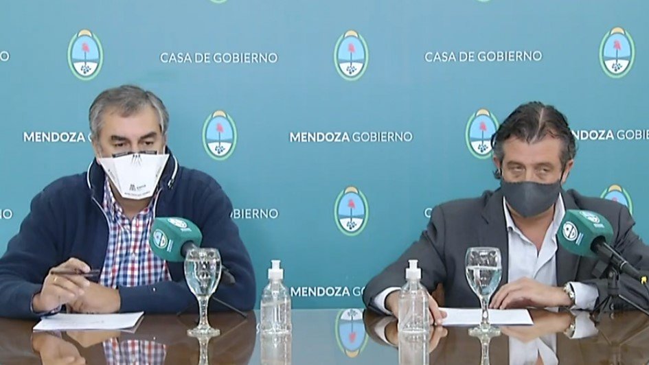 El ministro de Gobierno Víctor Ibáñez, y su par a cargo de la cartera de Economía, Enrique Vaquié, dieron una conferencia de prensa (virtual), sobre el alcance que tendrá en Mendoza la cuarta fase de la cuarentena, que tendrá lugar hasta el 24 de mayo.