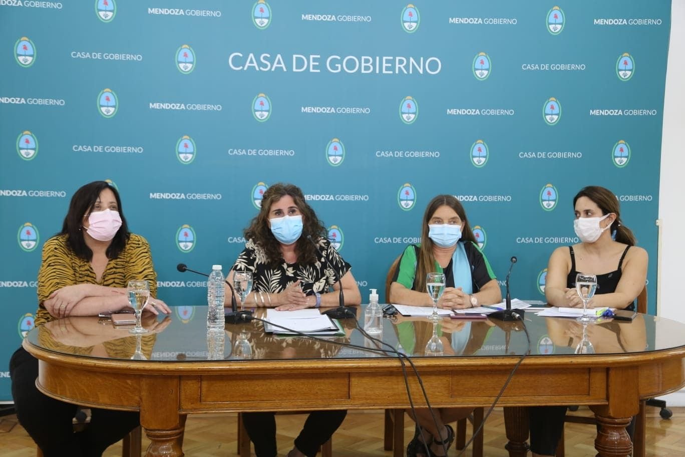La ministra de Salud, Desarrollo Social y Deportes, Ana María Nadal, junto a la subsecretaría de Planificación, Mariana Álvarez; la jefa de Inmunizaciones, Iris Aguilar, y Carolina Aguirre, de la Dirección de Epidemiología de la provincia, brindaron detalles sobre el avance de la campaña de vacunación contra la COVID-19 y la situación epidemiológica en Mendoza.