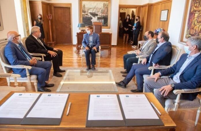 El Gobernador Rodolfo Suarez recibió en su oficina al ministro de Educación de la Nación, Jaime Perczyk, donde firmaron un convenio de cesión de material tecnológico.