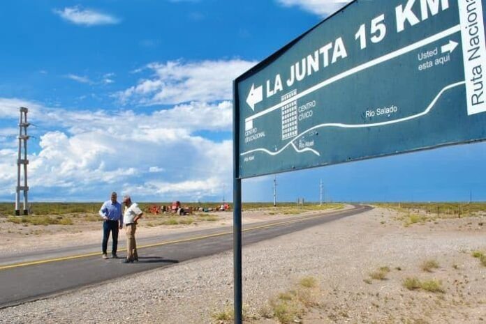 El camino que se extiende desde la Ruta Nacional 40 hasta el Paraje La Junta, Malargüe.