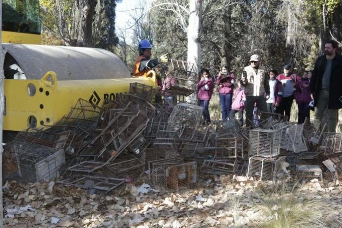 En el Centro de Rescate y Conservación de YPF, en el Complejo Industrial Luján de Cuyo, se destruyeron hoy más de 3.000 jaulas y tramperos utilizados para el comercio y tráfico ilegal de la fauna autóctona, los cuales fueron decomisados en varios operativos.