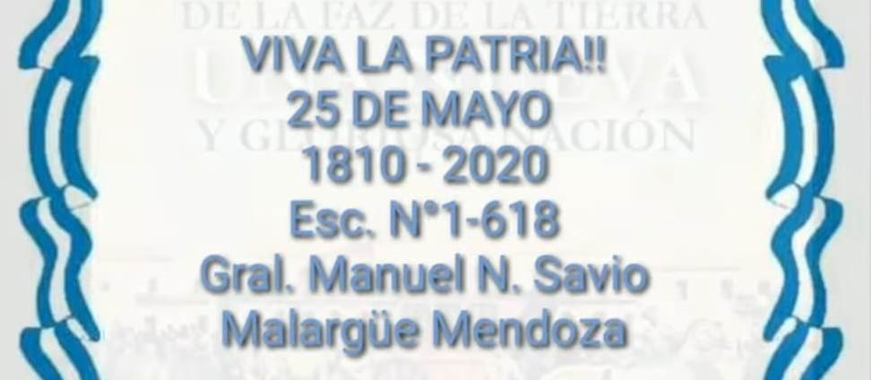 La comunidad educativa nos hizo llegar el siguiente video https://www.youtube.com/watch?v=ufWBFaR8mbo&feature=youtu.be&fbclid=IwAR3il5LoomIRkagrvN6UiAjg8_UiO26FEIP3DwT_pU1MXfy56Ua_NDXyL34, seguido de un ¡Viva la Patria!
