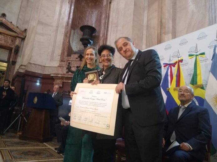 La distinción le fue conferida en el salón Azul del Congreso nacional junto representantes de México, Paraguay, Uruguay, Colombia, Bolivia, Perú, Brasil y de nuestro país.