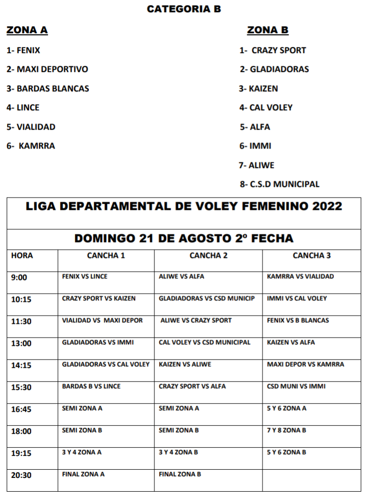 Cabe remarcar que las categorías contemplan dos zonas con 6 equipos en cada una de ellas.
