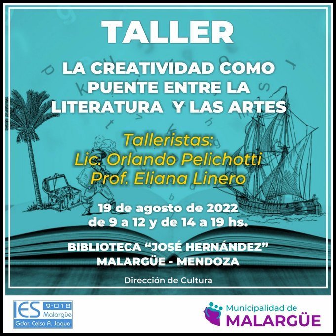 En un trabajo conjunto entre la Dirección de Cultura y el IES y gracias al nexo de la Prof. Eliana Lineros, el Artista Visual y periodista gráfico, Orlando Javier Pelichotti vuelve a Malargüe para dictar el taller denominado “La Creatividad, un puente entre la Literatura y las Artes”.