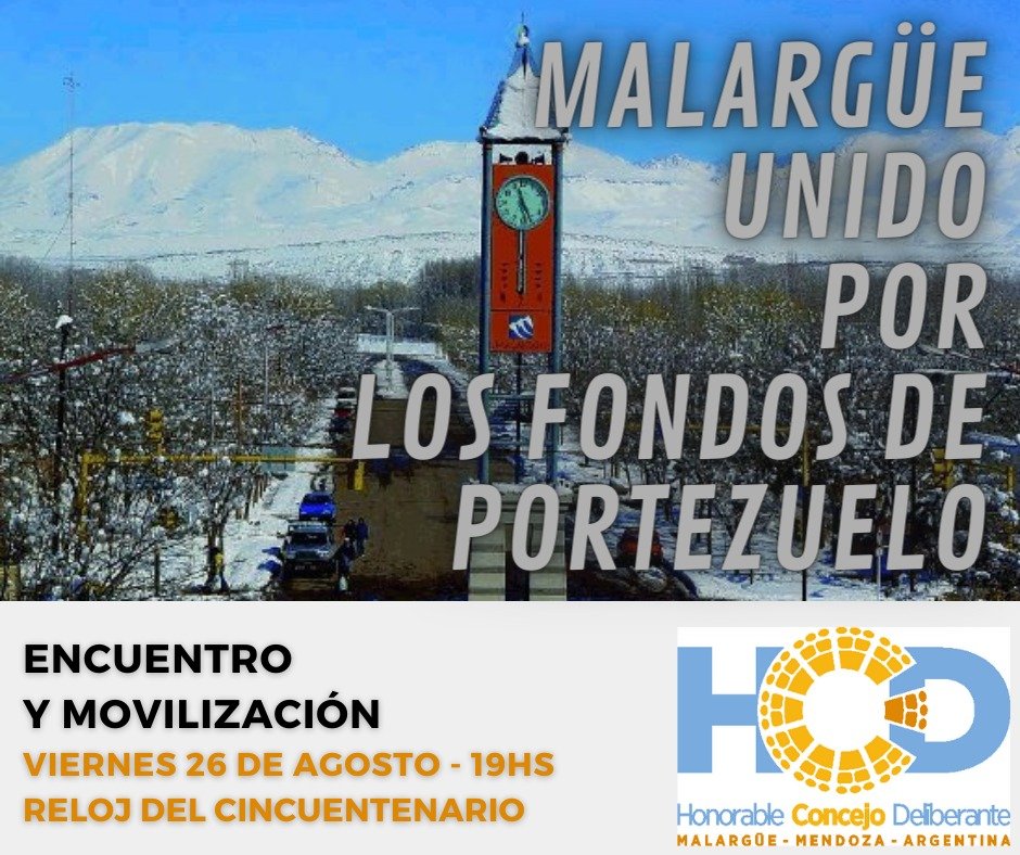 Expresamente, la concentración será desde las 19 horas en el Reloj Cincuentenario de la ciudad. Esperan la concurrencia de los malargüinos para manifestar el deseo de progreso y trabajo para el departamento.
