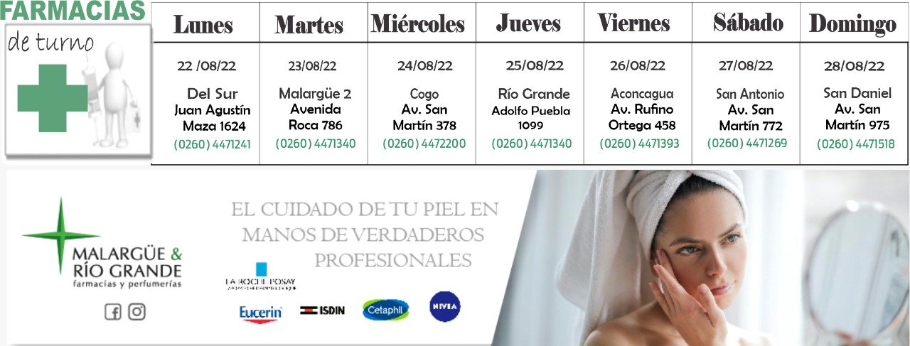 Lunes 09/02/2026Farmacia Río Grande – Adolfo Puebla 1099 – Tel. (0260) 4471340