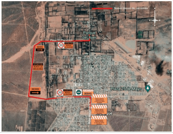 A las empresas e industrias se les informa que el desvío para cargas pesadas será por calle Paso El Planchón hasta Fortín Malargüe y Ruta Nacional Nº40.