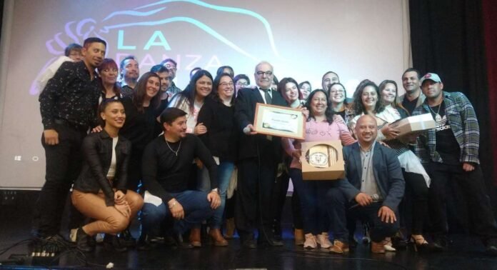 El Director municipal de cultura, Prof. Facundo Lineros, ex alumno de Zapata, le hizo entrega del reconocimiento, rodeado de “chicos” que fueron parte de las academias que fundó el docente a nuestro departamento, previamente todos interpretaron una zamba.