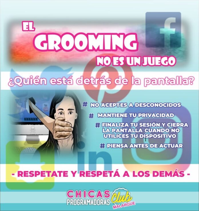 Por eso establece la creación del programa nacional de prevención del grooming, un delito incorporado al Código Penal en 2013. Se define como toda acción por la cual una persona adulta contacta a una persona menor a través de comunicaciones electrónicas, telecomunicaciones o cualquier otra tecnología de transmisión de datos para atentar contra la integridad sexual.