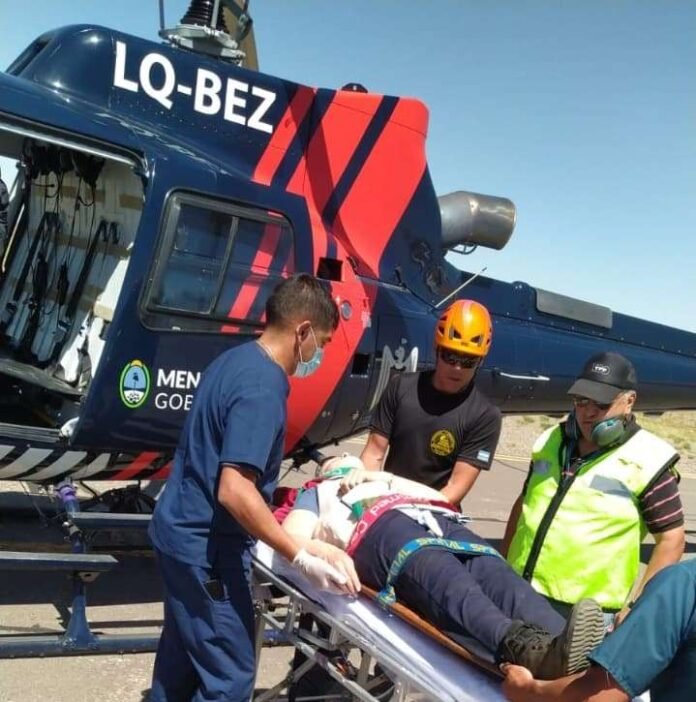 Finalmente, la mujer fue rescatada por el helicóptero, traslada al aeropuerto de Malargüe y de allí al hospital público donde fue intervenida quirúrgicamente.