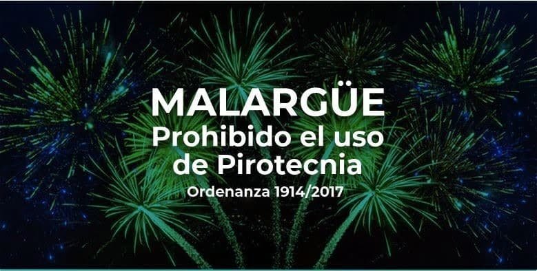 La Ordenanza 1914/2017, establecida por el Concejo Deliberante, estableció que está prohibida “la comercialización, tenencia, manipulación, uso, depósito, circulación y transporte de elementos de pirotecnia para seguridad y beneficio de la población” en el departamento de Malargüe por seguridad y para beneficio de la población en general, considerando el impacto negativo que se evidencia en el uso o tenencia de pirotecnia sobre el ambiente, los animales y las personas que manipulan este tipo de mercancía.
