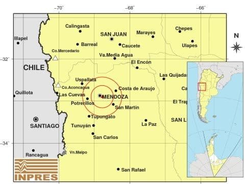 Un fuerte sismo se percibió este jueves en el Gran Mendoza. Ocurrió a las 8.28 y el epicentro se ubicó 5 kilómetros al oeste de la capital provincial y a 29 kilómetros al este de Potrerillos.