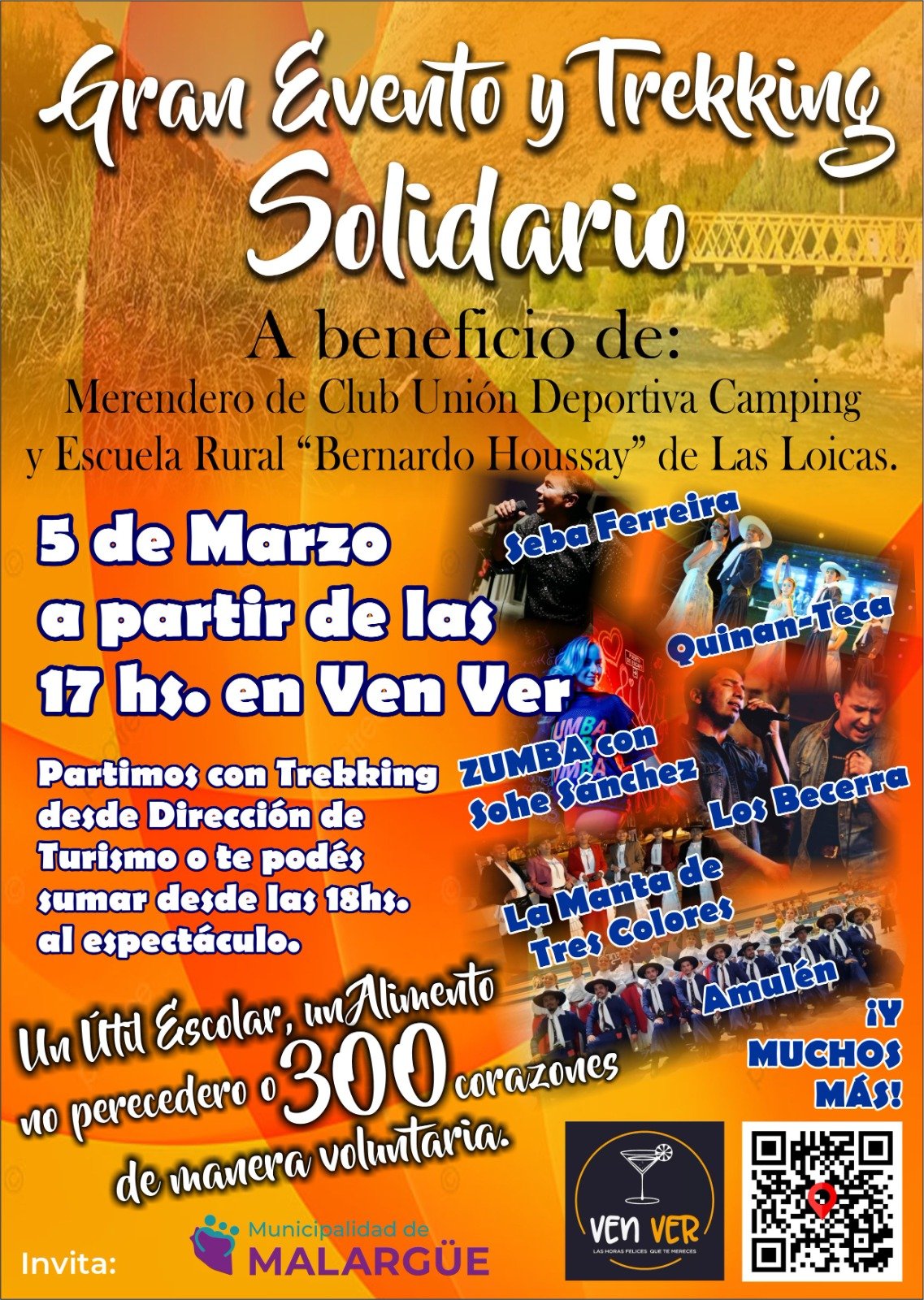 Entre distintas áreas de la Municipalidad de Malargue se unieron para realizar este domingo un evento solidario que tendrá la participación de artistas locales con un show en vivo, además de trekking y zumba, dando comienzo a las 17 horas en el Parque de la Dirección de Turismo y continuando en VenVer Malargüe.