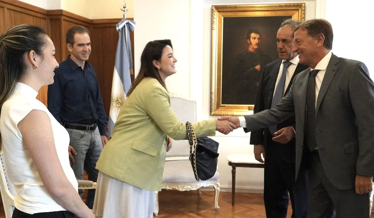 El Gobernador de Mendoza, Rodolfo Suarez, recibió en la Casa de Gobierno al embajador de Argentina en Brasil, Daniel Scioli, quien llegó a la provincia acompañado por empresarios brasileños que se dedican a la importación de productos argentinos.
