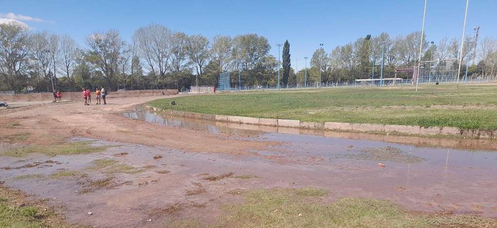 Atento a ello, aparentemente, el sistema de riego no ha dado resultado y hay quienes creen que es por el tipo de aspersores que tiene. Lo cierto es que la pista se inunda en varios sectores y que el terreno no tiene una buena capacidad de absorción del agua por lo que hace se hace barro y las prácticas deportivas no puedan realizarse como es debido.
