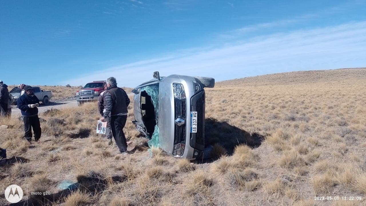 Producto del hecho, la camioneta se salió de la traza de la ruta, volcando sobre uno de sus costados.