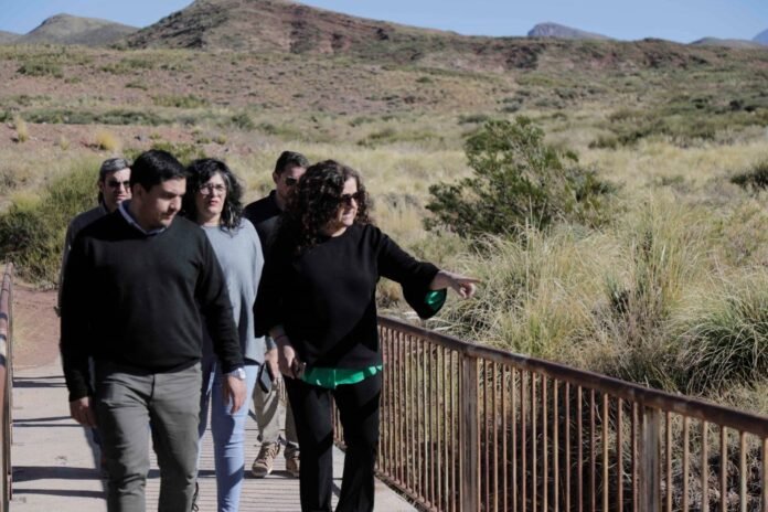 La firma se realizó en el Centro de Convenciones Thesaurus y posteriormente, se trasladaron la Ministra Vicario junto al intendente Ojeda, los paleontólogos, Leonardo Ortiz y María Belén Tomasselli, el director de Promoción y Políticas Turísticas, Marcelo Rivarola, el director de Cultura, Facundo Lineros, la coordinadora de Patrimonio, Ana Paula Gutiérrez, y el secretario de Obras Públicas, Maximiliano Zenobi, al Parque Municipal Cretácico Huellas de Dinosaurios a recorrer los avances de obras, el centro de interpretación e informador turístico y la zona de huellas de dinosaurios del parque.