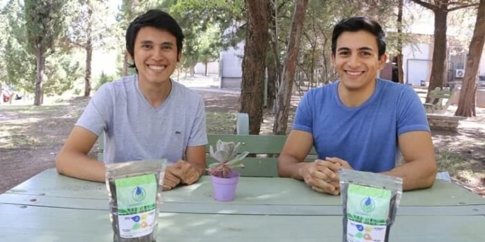 Axel y Denis, apoyados por distintas instituciones y organizaciones, pudieron así llegar a crear un polvo granular que se coloca alrededor de las raíces de las plantas, de modo que absorbe el agua de riego, la retiene y la va liberando lentamente por ósmosis, cuando la planta la necesita. No es la primera vez que se ve algo así, pero en este caso hay varias cosas innovadoras.