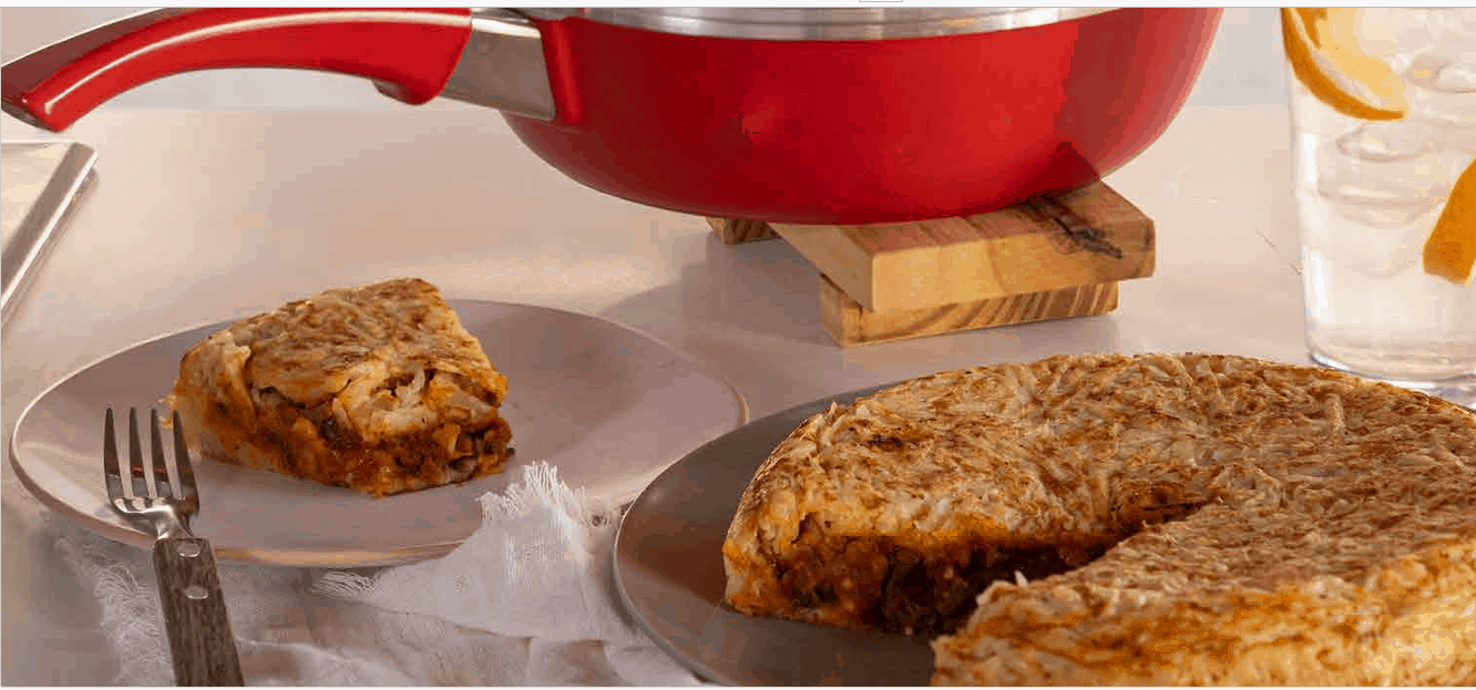 Una fácil y económica receta para este sábado, tortilla rellena de carne, nos propone Georgina Giambenedetti, emprededora Essen de Malargüe.