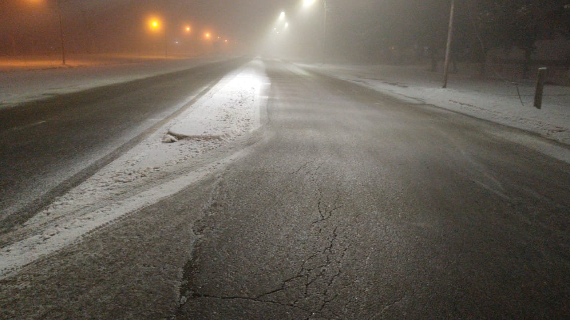 Camino intransitable por acumulación de nieve y formación de hielo sobre calzada. Personal de guardia y equipos Dirección Vialidad Nacional en operación de despeje de nieve y Tratamientos paliativos Anti Hielo.