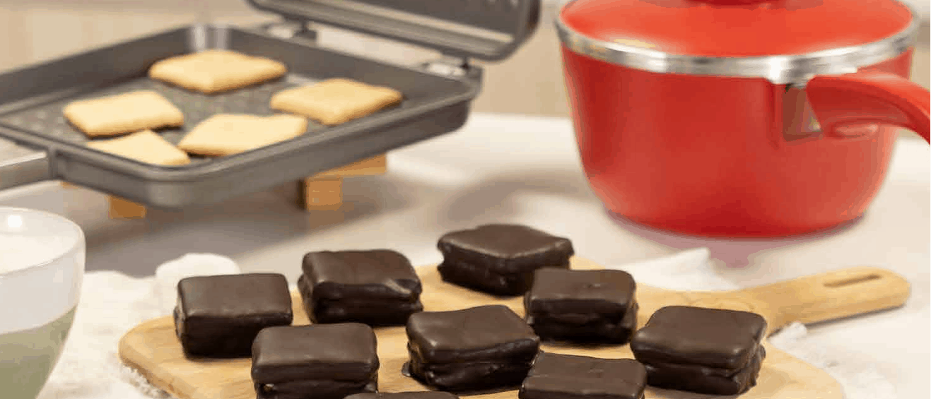 Bañamos las galletitas, las dejamos enfriar y servimos.