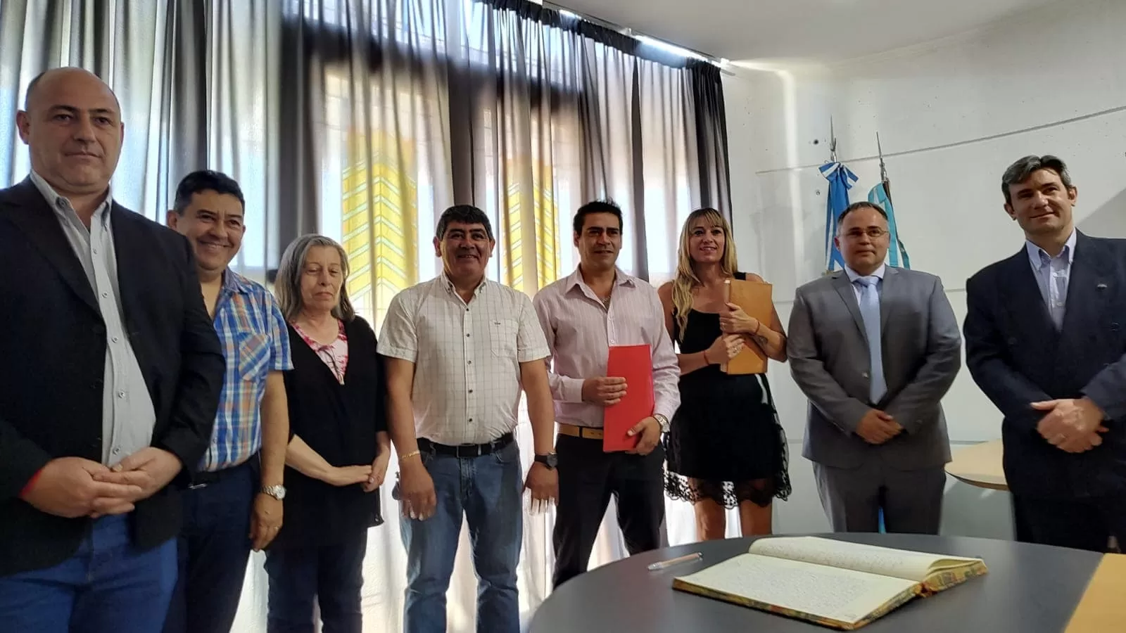 Una vez que se hizo pasar al periodismo al despacho del intendente, casi en penumbras porque las cortinas estaban cerradas y la iluminación no era la adecuada para registrar tomas fílmicas y fotográficas, Paola Paleico, Secretaria de Gobierno de la gestión saliento, invitó al Presidente electo a firmar el acta, sin hacer lectura oral de la misma. Juan Manuel Ojeda no se encontraba en el lugar debido a que, como lo anticipó a algunos medios radiales, había sido invitado a participar de la asunción del Presidente Javier Milei.