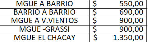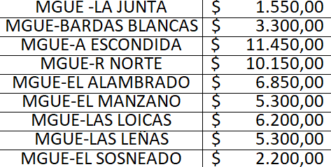 Precio boleto Ciudad de Malargüe a distritos y parajes
