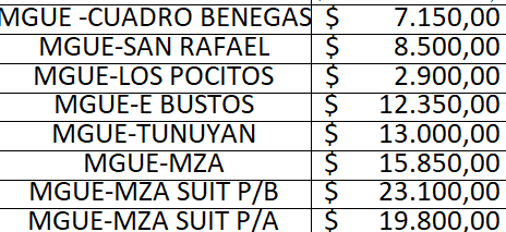 Precio boleto Malargüe San Rafael y Ciudad de Mendoza