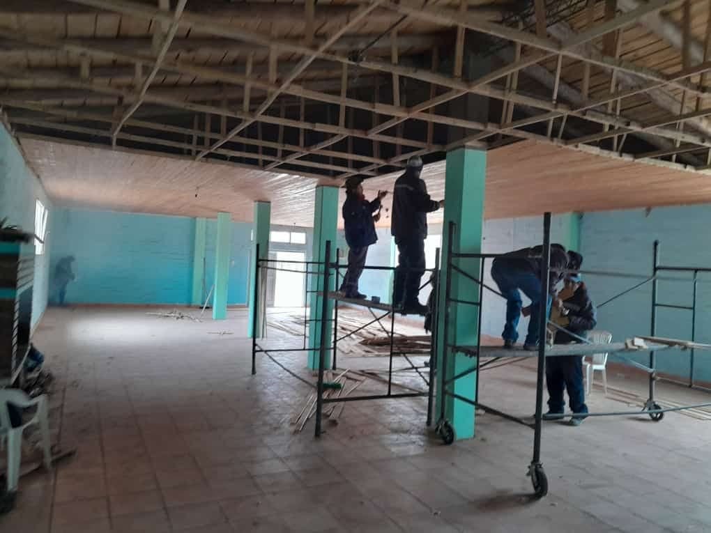En Agua Escondida, el municipio ha pintado el playón del polideportivo y continúa con la reparación del cielo raso del Salón Comunitario.