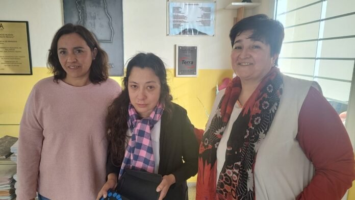 La profesora María Laura Miranda, junto a la docente Mariela Villegas y la fonoaudióloga Lorena Bechar, mantuvieron contacto con el periodismo.